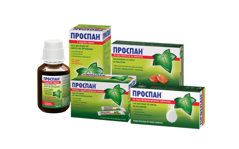 *Проспан е растителният експекторант с най-високи продажби в стойност в групата на експекторантите за 2023 г. (IQVIA Global OTC Insights). Лекарствен продукт без лекарско предписание. Съдържа сух екстракт от листа на бръшлян. Проспан сироп – за възрастни и деца над 2 години. Проспан ликвид/ефервесцентни таблетки/таблетки за смучене – за възрастни и деца над 6 години. Преди употреба прочетете листовката.